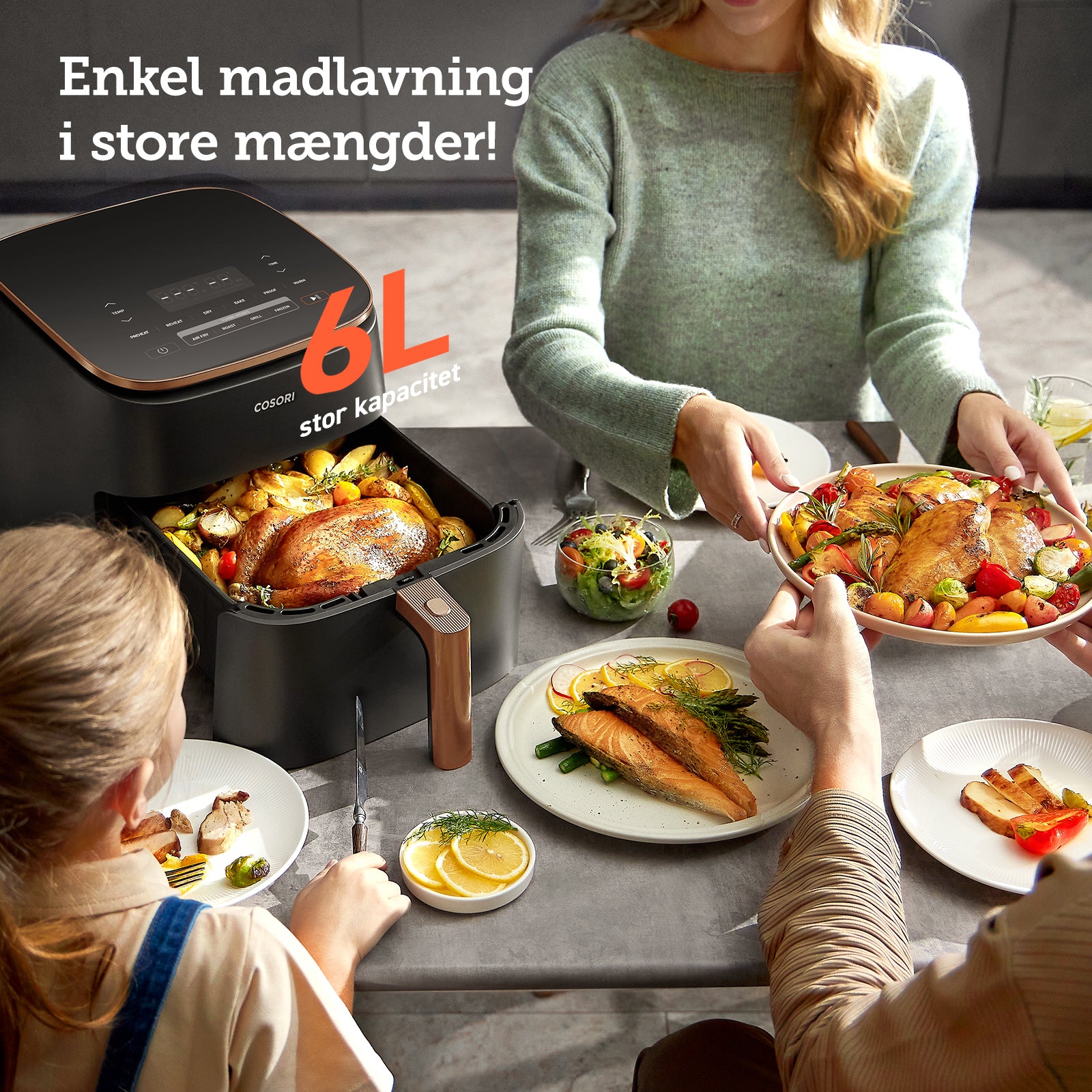 Lav perfekte portionsanrettede måltider med COSORI TurboBlaze™ 6,0L Airfryer. Med intuitive funktioner, smart teknologi og et støttende community revolutionerer COSORI madlavningen hjemme og fremtryller sunde, lækre måltider tilgængelige for alle.
